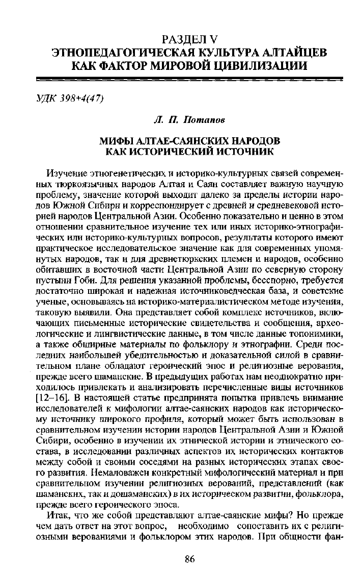 Влияние мифов на культуру и жизнь алтайцев