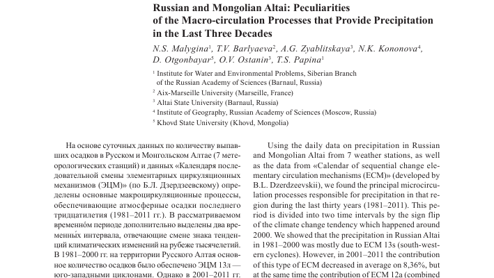 Особенности атмосферной циркуляции и распределение осадков на Алтае Алтай – это горная страна, расположенная в южной Сибири, обладающая уникальным климатом