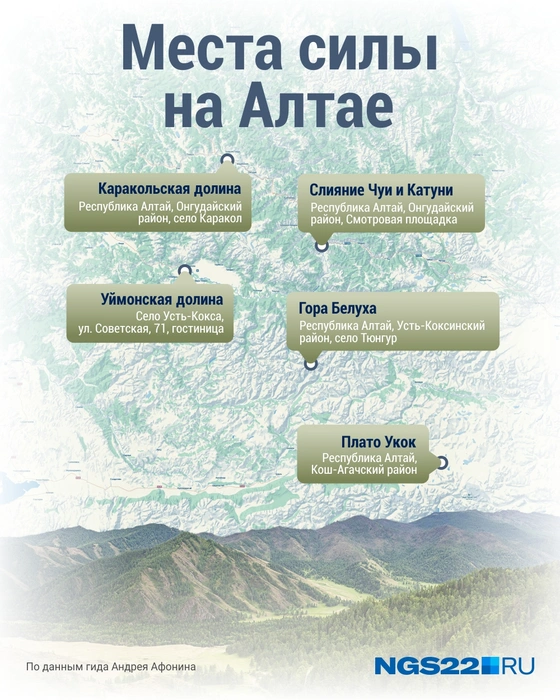 - Таблица известных мест силы Алтая⁚